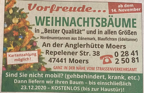 - einschließlich 23.12.2020 - Kostenlos ( bis zur Haustüre )!